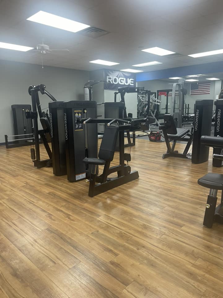 Our selectorized machines are brand new from Freemotion and, our weight area includes Hammer Strength plated loaded machines and a variety of Rogue equipment including Rogue rack, bench press, deadlift platform, cable cross over, barbells, bumper and steel plates, as well as dumbbells.